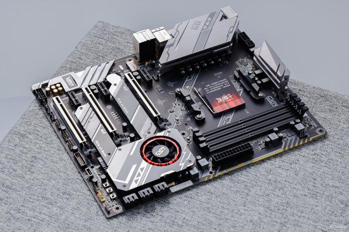 在CPU供电方面,为6相数字供电。VRM、M.2固态硬盘、芯片组上方的全覆盖式冷凝片和寒霜散热装甲一样不少,能够把这些高发热量的区域迅速从温度的困境之中解除出来。