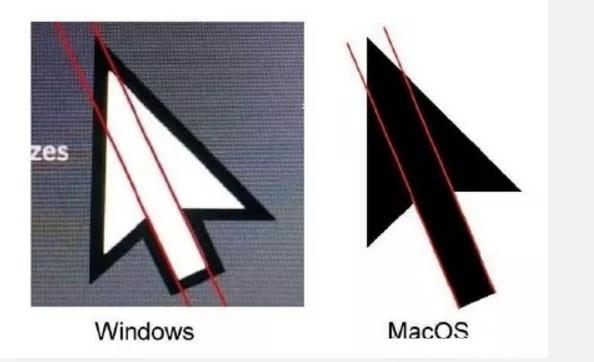 2、Windows的鼠标光标是不对称的、Mac是对称的。