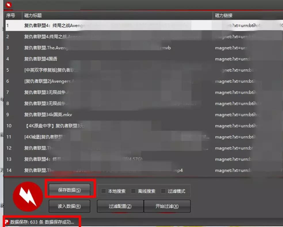 6、如果想保存这些链接,可以点击“保存数据”即可。以后可以进行读取数据,从而本地搜索或者离线搜索。