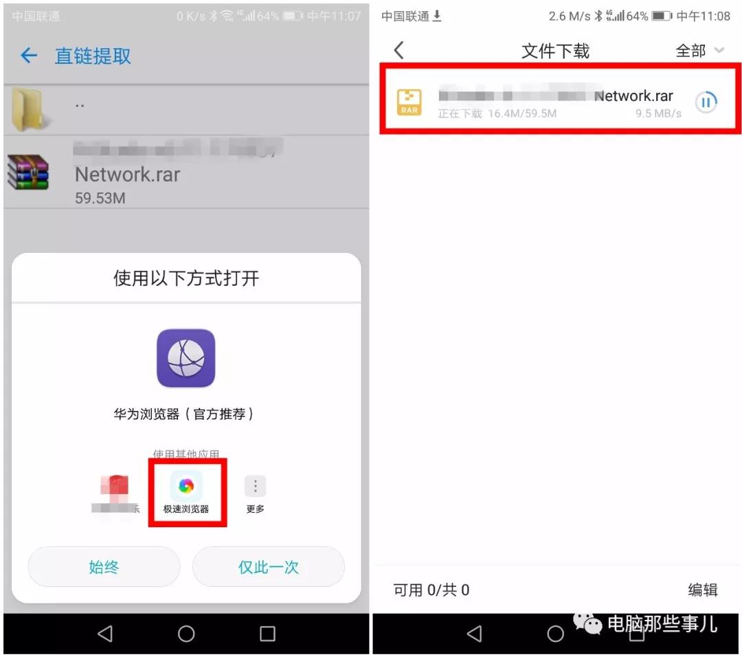 3、点击文件,会出现“直链提取”页面,这时可以选择“其他下载”,即可用手机自带的浏览器快速下载文件,可以看到“事儿哥”这里速度还是不错的~