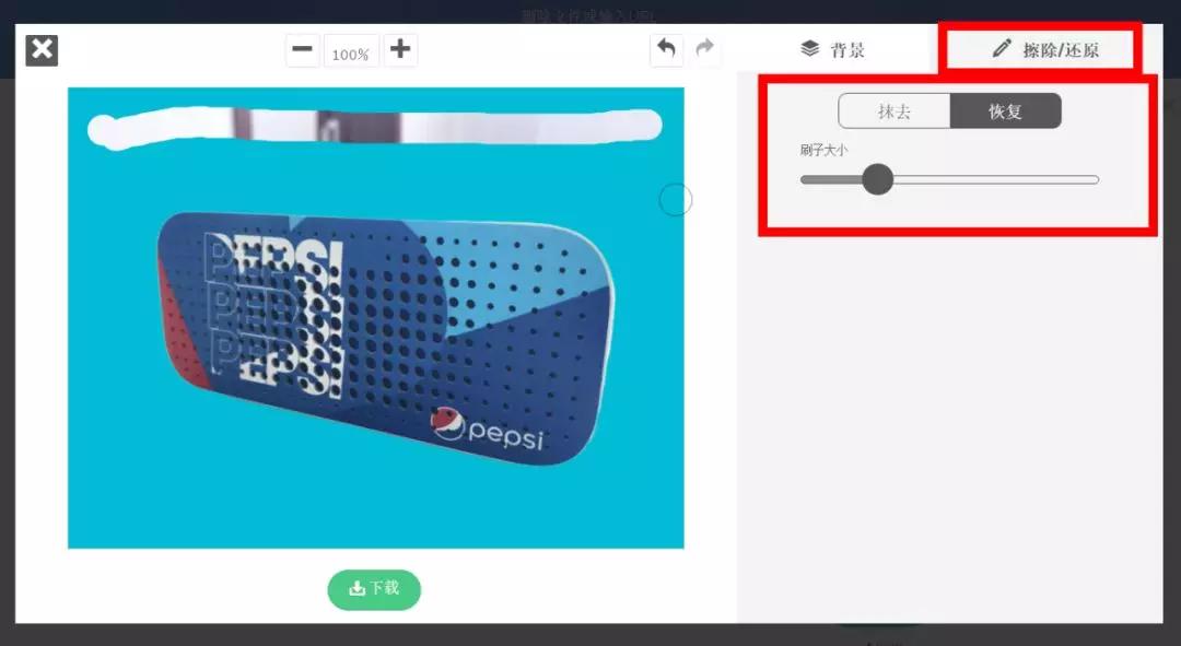 4、如果觉得细节不满意,或者想换背景,可以点击“编辑”,提供了各种背景,可以更换,也可以点击“擦除或者还原”,对细节部分进行精修。