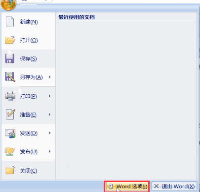 (1)单击左上角的[office button],单击弹出菜单右下角的[word option],