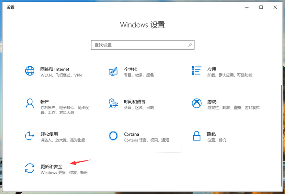 1、使用快捷键“win+i”打开“Windows设置”窗口,点击“更新和安全”。