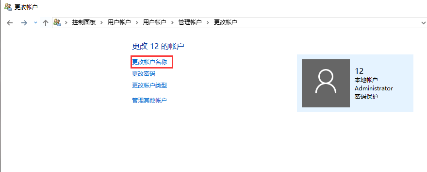 4,点击右侧的“更改账户名称”。