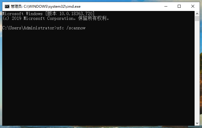 6、在命令提示符中输入“sfc /scannow”,按下回车,系统就会自动扫描并修复Windows10系统,待扫描修复完成即可。