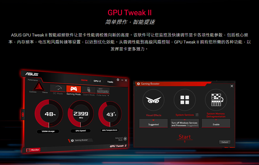 2、由于显卡超频这个操作风险比较高,建议使用显卡厂商对应提供的超频软件。小编以华硕显卡为例,华硕的官方显卡超频工具叫做GPU Tweak II。