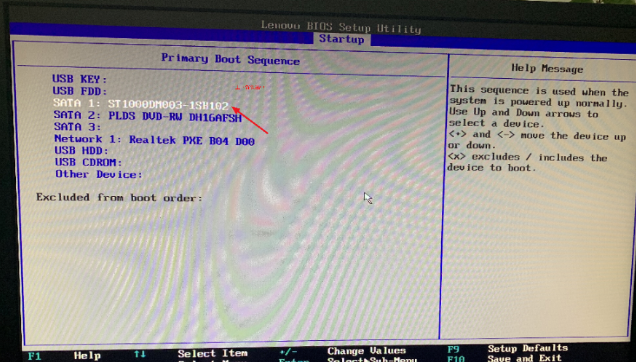 4,然后我们光标移到硬盘选项上,按下键盘上的“+/-”号键将其置顶。