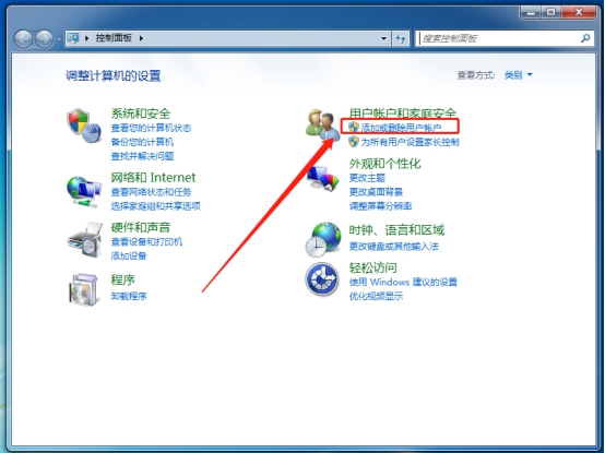 在控制面板中,找到并点击进入“添加或删除用户账户”。