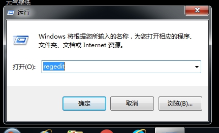 在打开的运行页对话框中输入“regedit”命令,调出注册表编辑器。