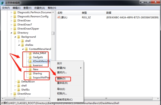 将“ContextMenuHandlers”文件夹下的除New文件外的所有子文件,右键点击选择删除。