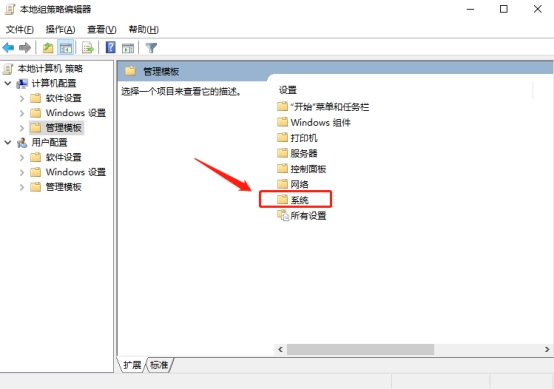 然后再依次双击打开“管理模板”和“系统”文件夹。