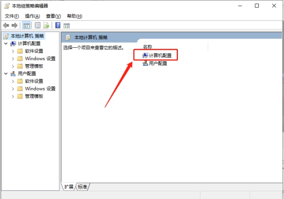 在本地组策略编辑器页中,双击打开“计算机配置”选项。