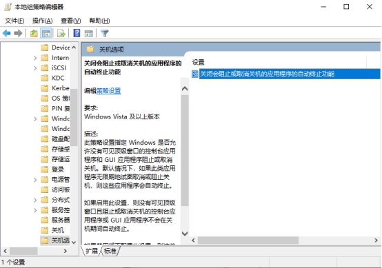 最后双击打开“关闭会阻止或取消关机的应用程序的自动终止功能”,将其设置为“已启用”状态即可。