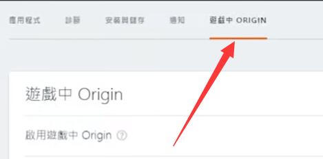 5、再点击上方“游戏中origin”选项。