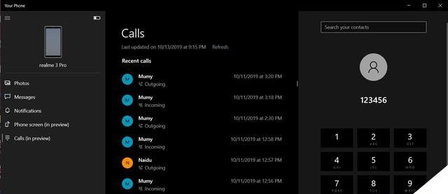 7、Your Phone应用程序的这个功能使你可以接听来自电脑的来电,并且从电脑进行呼叫。
