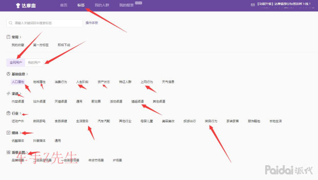 现在都在讲大数据,包括人群标签也是大数据给你匹配,可是大数据到底是什么,到低有哪些标签给你去匹配?当你见多达摩盘的后台你就会像发现新大陆一样。