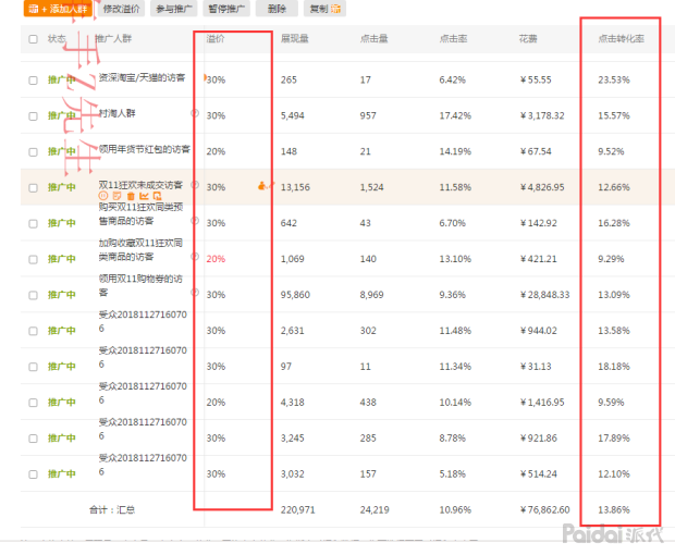 PS:如果是类目很小的标品,人群标签影响是会比较小的。因为类目小,直通车本身就获取不了太大的流量,对流量需要较高的朋友,就不要尝试托价了。