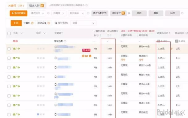 (4)关键词有出价,有展现即可。开广泛匹配,人群不打开。定向关闭。