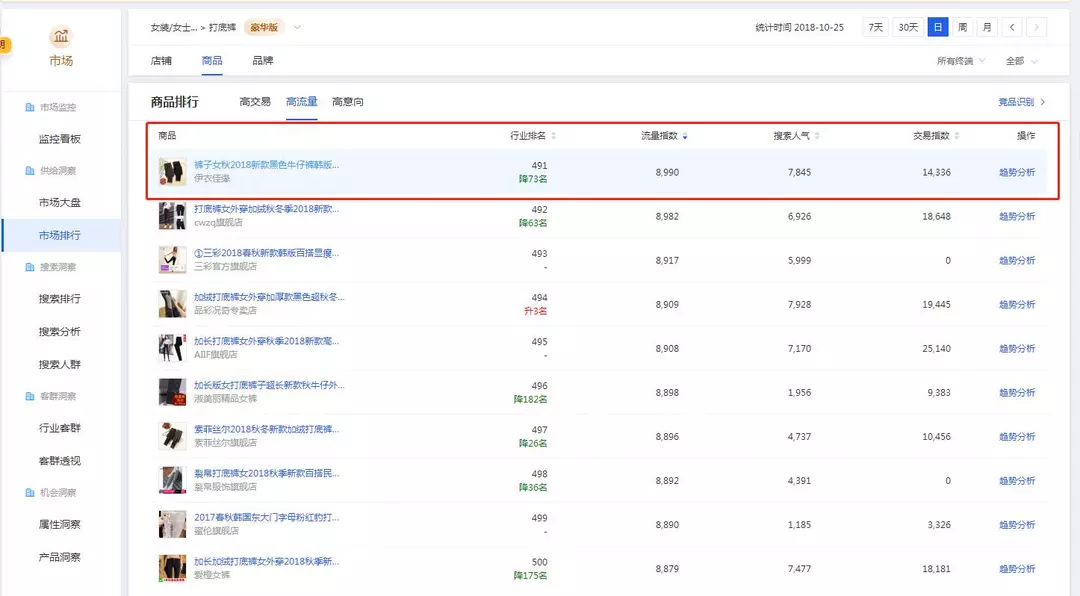 11. 首先要找到竞争店铺,可以通过生意参谋-市场排行,找到商品里高交易或者高流量的产品,也可以通过淘宝搜索去找。
