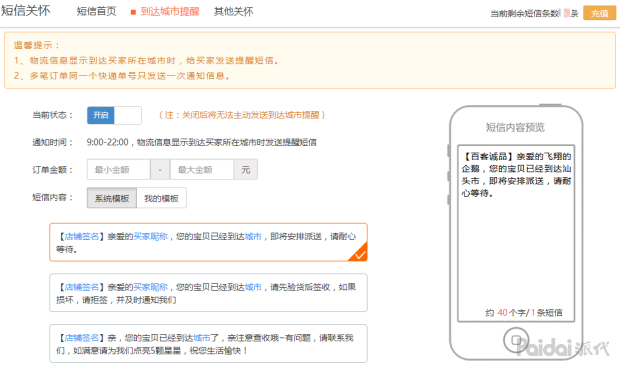从拍下付款,到货物签收,全程短信实时播报订单进度,让顾客对货物到哪了心中有数。