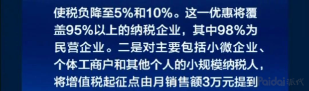 2.对主要包括小微企业、个体工商户和其他个人的小规模纳税人,将增值税起征点由月销售额3万元提高到10万元。