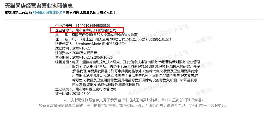 听着是不是感觉特别靠谱?但是,海外旗舰店和品牌官方旗舰店不同的是,前者是无法查看到工商执照信息的。
