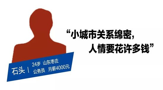 小城市关系绵密,人情上花的钱太多。身边的人纷纷到了结婚的年纪,完全不熟悉的同事要随200块,稍微认识一些的要600块,关系很好的当然1000块,发小儿结婚,怎么也得2000块。每逢五一、十一,就是钱包大考,基本要花掉一两个月的工资。