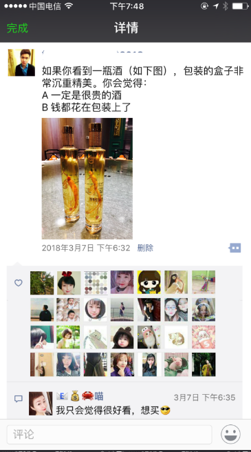 二,此条说说发布后,自然一群女性好友就来点赞了。此时注意,这些人的重点并不是2块钱的红包,而是说说最后一句“挑漂亮的抽”。因此,都是抱着“试试看是不是最美”的心态来的。