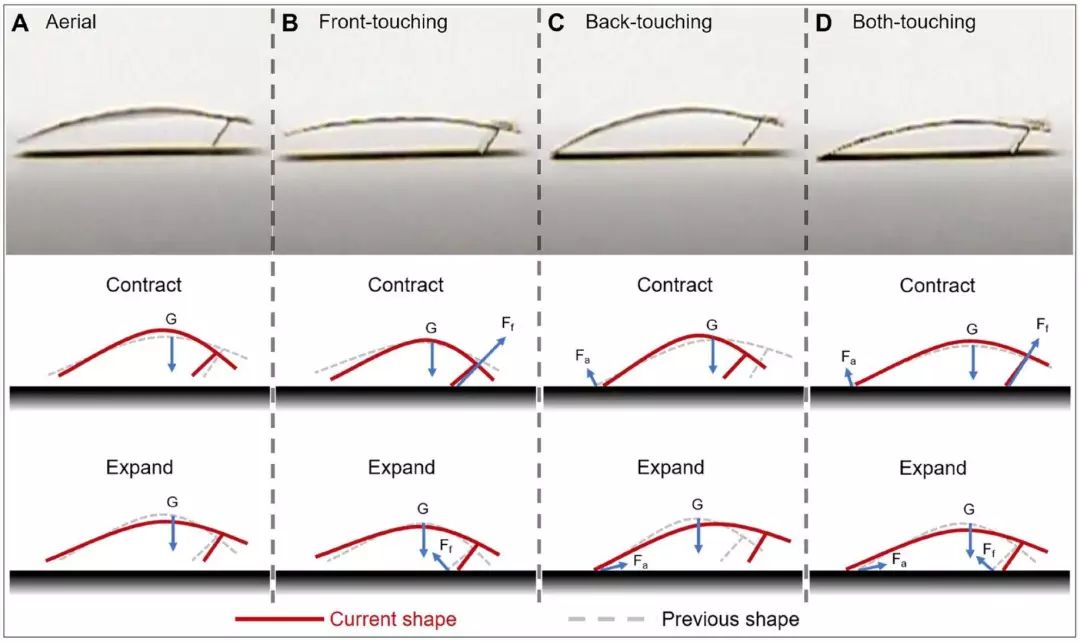 而这款机器人运动的方式就更加奇特了。利用交流电压(低至8伏,但通常约为60伏)穿过电极时热塑性塑料的伸展和收缩,从而使机器人向后弯曲并且“小步幅”的走动,完整的一个步进周期仅需50毫秒。