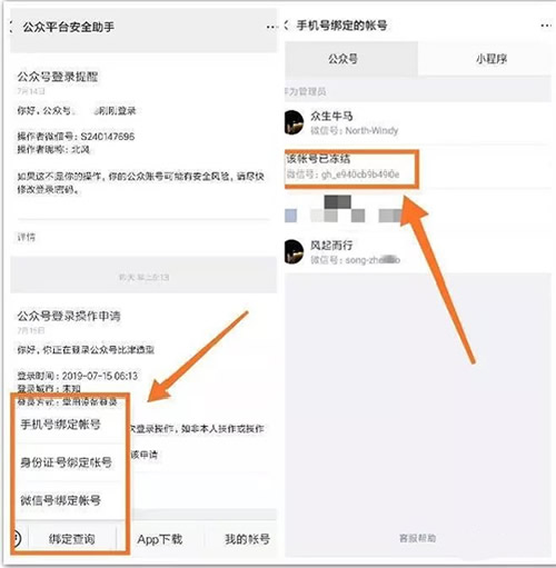 1)通过公众平台安全助手—>绑定查询,通过手机号/身份证/微信号绑定账号,查看绑定过的账号里有没有想找回的号;