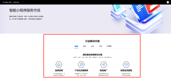 百度智能小程序服务市场入口点击后直接进入双方合作页面