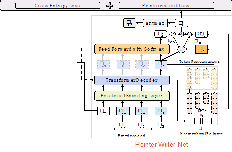 - Hierarchical Encoder+Leader-net+Pointer Writer-net的网络架构(不考虑强化学习损失);