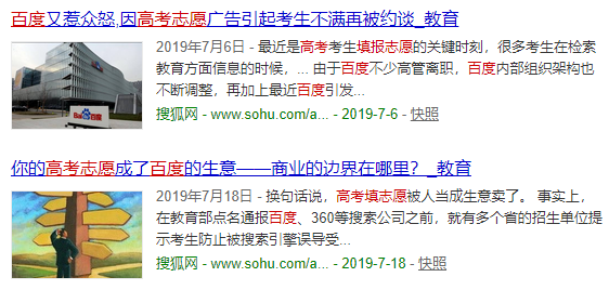 在‘创新’领域,百度面临着:全国自媒体的紧密关注,例子:高考填志愿。