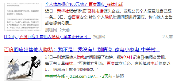 对于卖隐私的指责,百度表示:“仅2018年,百度累计下线“涉嫌窃取公民个人信息”的恶意网站达34万,网址达1490万,并配合公安打击数十个涉嫌用黑客手段制作“营销工具”的团伙,抓获相关犯罪嫌疑人近百人。”