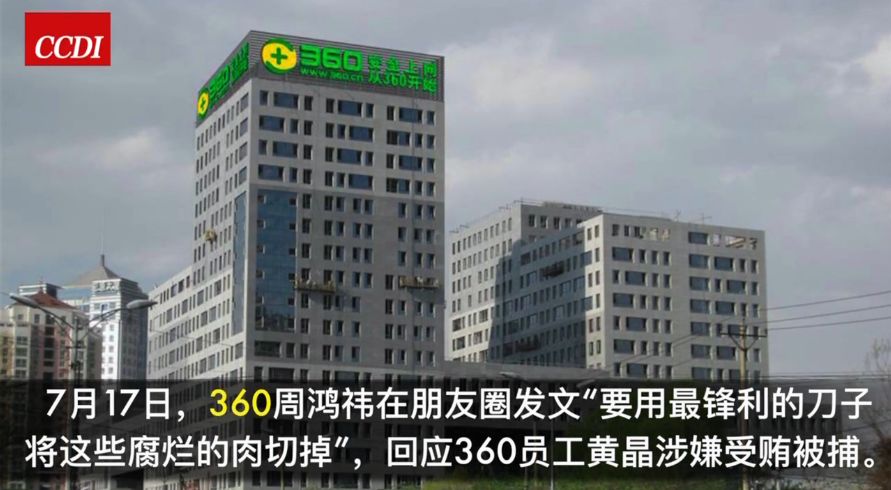 同一天,360内部通报,经道德委员会查实,知识产权部资深总监黄晶接受多家代理商贿赂,涉嫌非国家工作人员受贿罪。目前,黄晶已被检查机关批准逮捕。