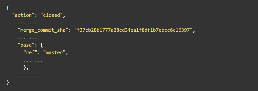 - action 表示当前的 pull request 事件细节。创建 pull request 时 action 是 opened ,关闭 pull request 时 action 就是 closed;