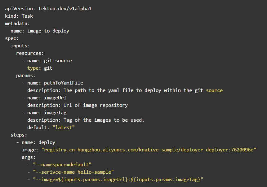 - 部署示例文件:https://github.com/knative-sample/eventing-tekton-serving