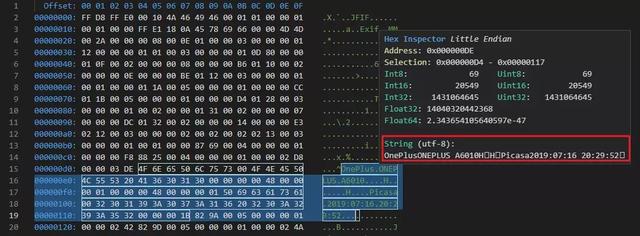 原始图片在十六进制下能看到拍摄设备信息