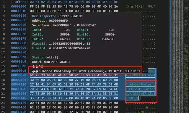 差评君又查看了一下使用另一款图像处理工具「 泼辣修图 」编辑过的图片的十六进制信息,其后也没有出现不明意义的序号。