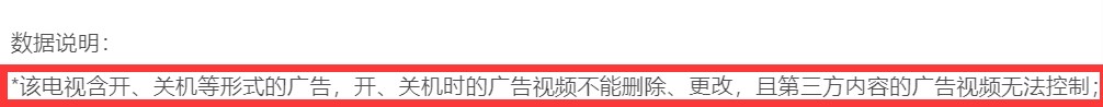 电视广告的出现形式,可谓无所不用其极。尤其是开关机广告,更是暴露电视厂商“难看的吃相”。通常来说,电视的启动时间在20秒左右。而电商厂商给出的解释,是“开机广告能够消除用户开机时黑屏的不适感。”好吧,“谢谢”你们周全的考虑,但是真的不需要这样的广告。试想一下,电脑、手机等设备在开关机时,怎么都没有广告?归根到底,还是电商厂商以电视本身价格已经足够低廉为借口,不肯放弃广告这种收益丰厚的盈利方式。