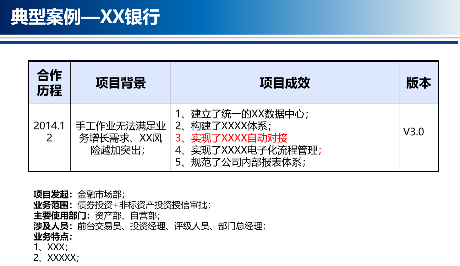 比如券商,有些券商做债券投资、股票质押、ABS业务,对于ABS 业务他们不知道如何去评级,这时如果典型案例有做ABS业务的券商,就真的讲到客户心坎上去了。