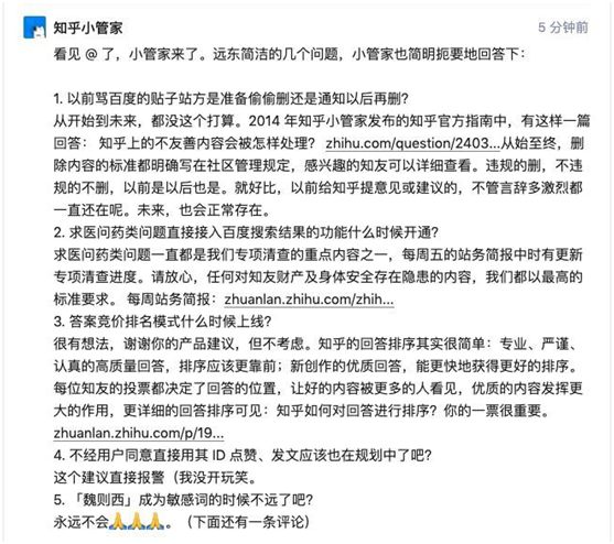 对此,知乎小管家表示很无辜,“我们这么多投资方,哪位妨碍大家讨论了呀?”