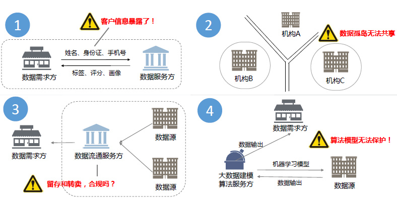 安全多方计算平台是富数科技于今年重点发力的新方案。张伟奇表示,大数据的价值已被广泛认可,尤其是金融、医疗和人工智能领域,都离不开大数据。但目前的大数据流通市场,存在诸多风险,比如个人隐私保护——金融机构查询数据服务方,数据服务方可能存留客户资料;比如数据中间服务商也可能留存数据,且现阶段暂时还没有较好的技术机制防范。