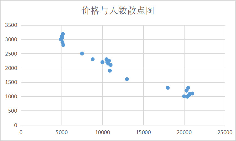 如图,横轴为客单价,纵轴为人数。我们可以看出客单价5000左右区间集中地人数最多,这样的聚集区域有三处既5000元、10000元、20000元
