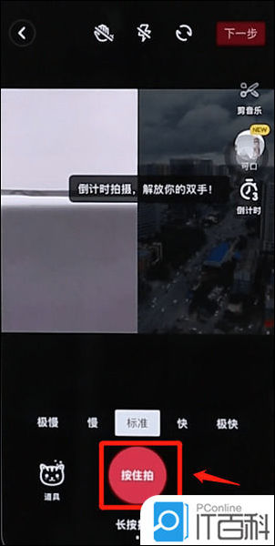 按住【拍摄】按钮即可开启拍摄;