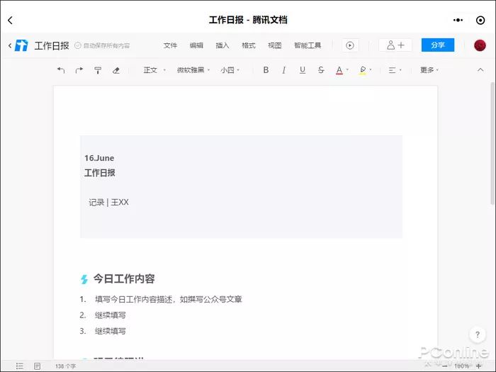 好在一些工具类的小程序可以正常运行,这样一来一些好用的小工具就可以在电脑里发挥作用了。在微信PC版的小程序也有经过针对PC使用优化的,比如腾讯文档,打开后一个在线版的简单办公软件就来了。