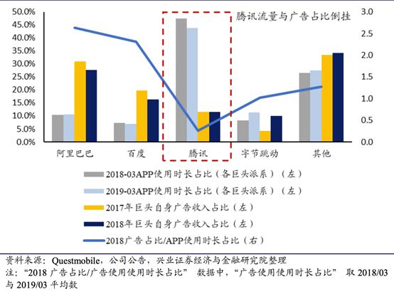 此外,从腾讯整体的广告收入来看,腾讯本身的流量基础,一直对广告变现克制,使得流量和广告占比倒挂。