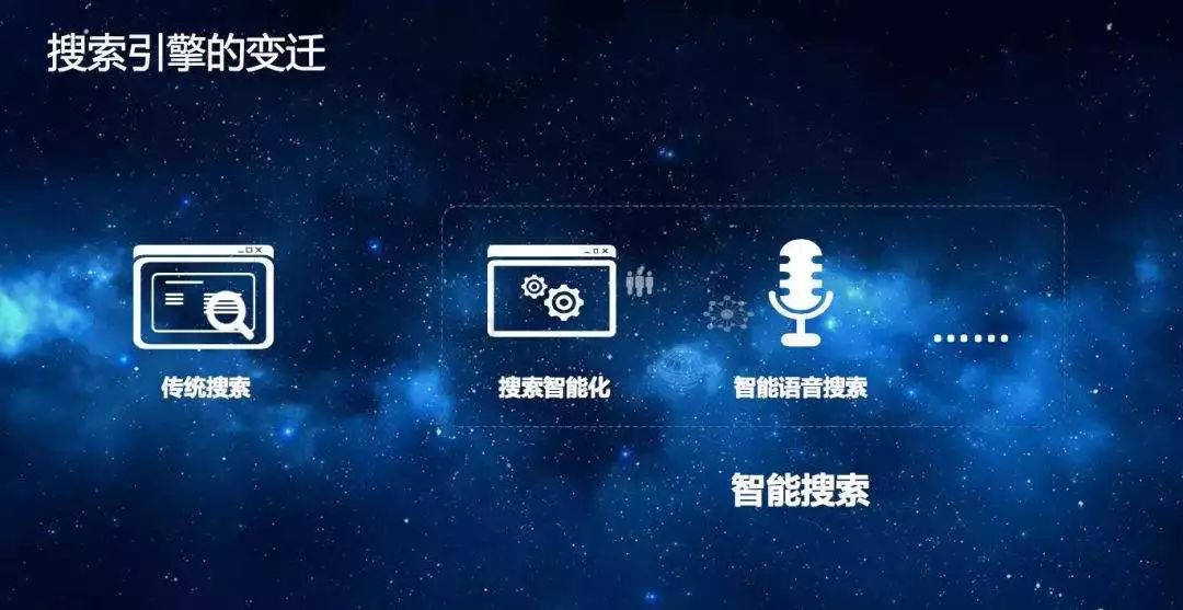 搜索引擎的进化史,就是人工智能技术的进化史,智能搜索正在演进的方向是更加精准的答案,甚至是唯一的答案。搜索引擎发展到终极阶段,很可能不需要人为地输入任何信息,直接根据用户画像、使用行为记录、传感器数据等就可以做出智能判断。