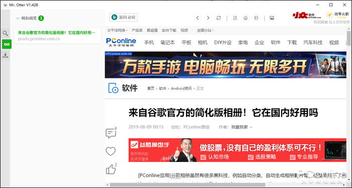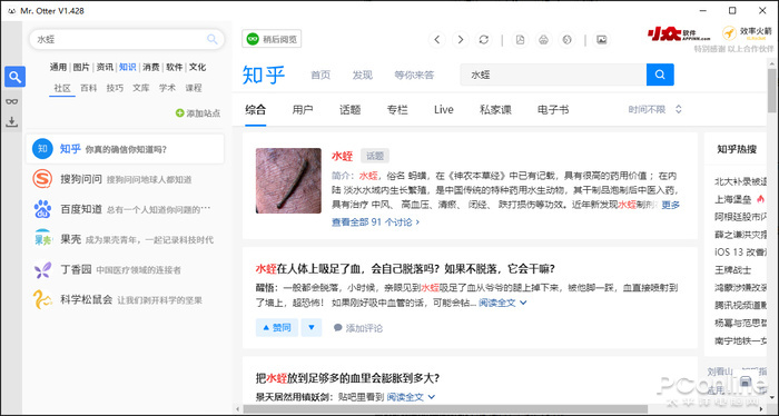 Mr. Otter的操作界面很简单,左侧为搜索框以及各类搜索引擎的切换入口,右侧为内容显示区域。