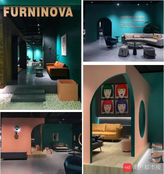 Furninova家具店:运用粉绿对比撞色,圆形、拱门等几何元素,演绎出经典品牌的年轻时尚。